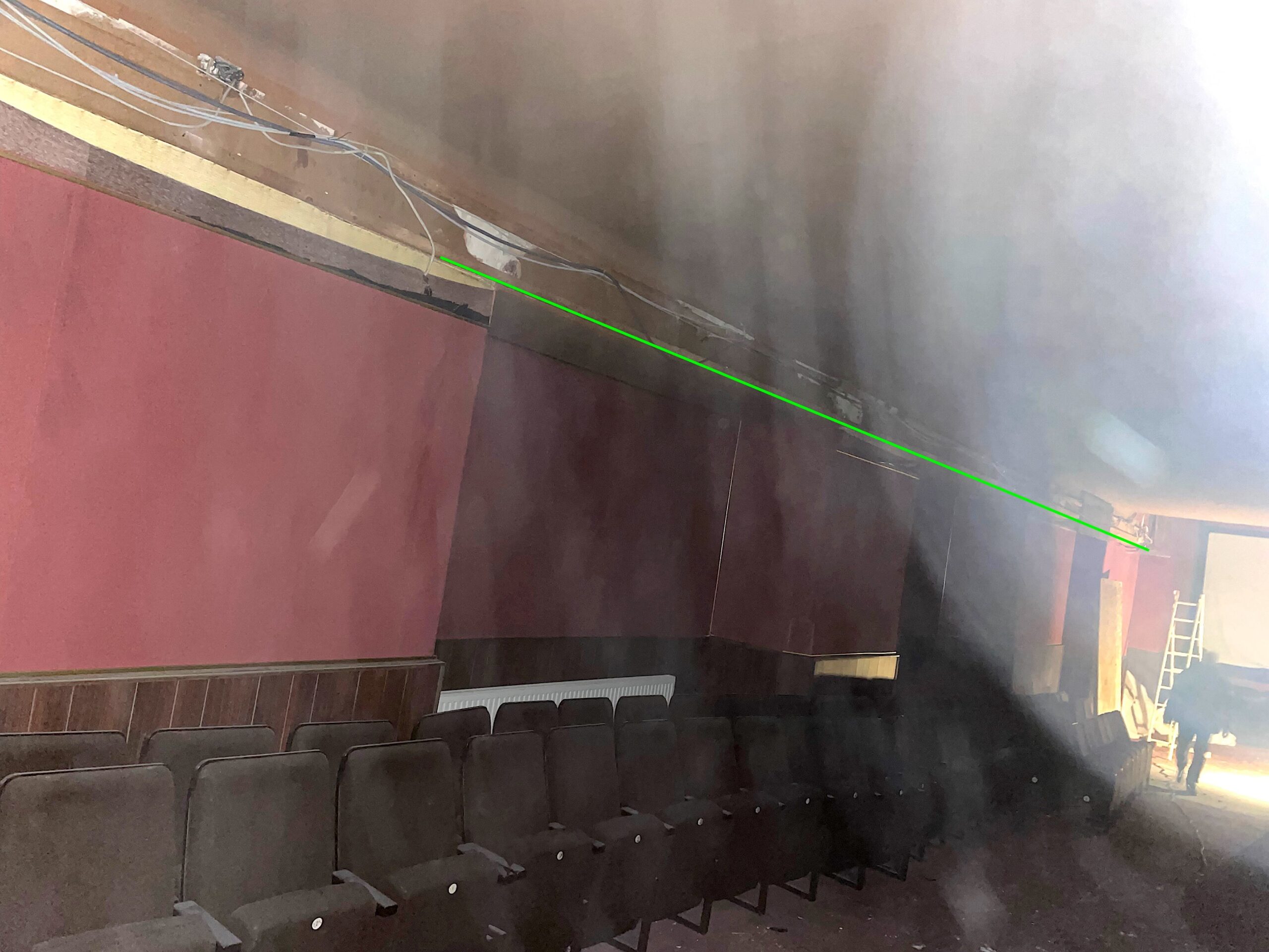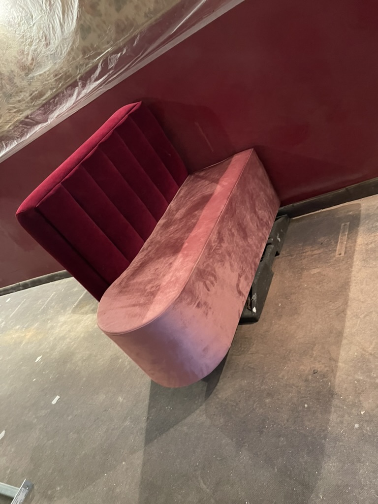 Der Kinosaal ist durch eine gestaffelte Abfolge aus Podesten und Gefällen organisiert. Diese Struktur ist funktional gebunden und folgt der Logik der Sitzanordnung. Im angrenzenden Gastraum setzt sich das Gefälle fort, bleibt jedoch räumlich unbeantwortet.