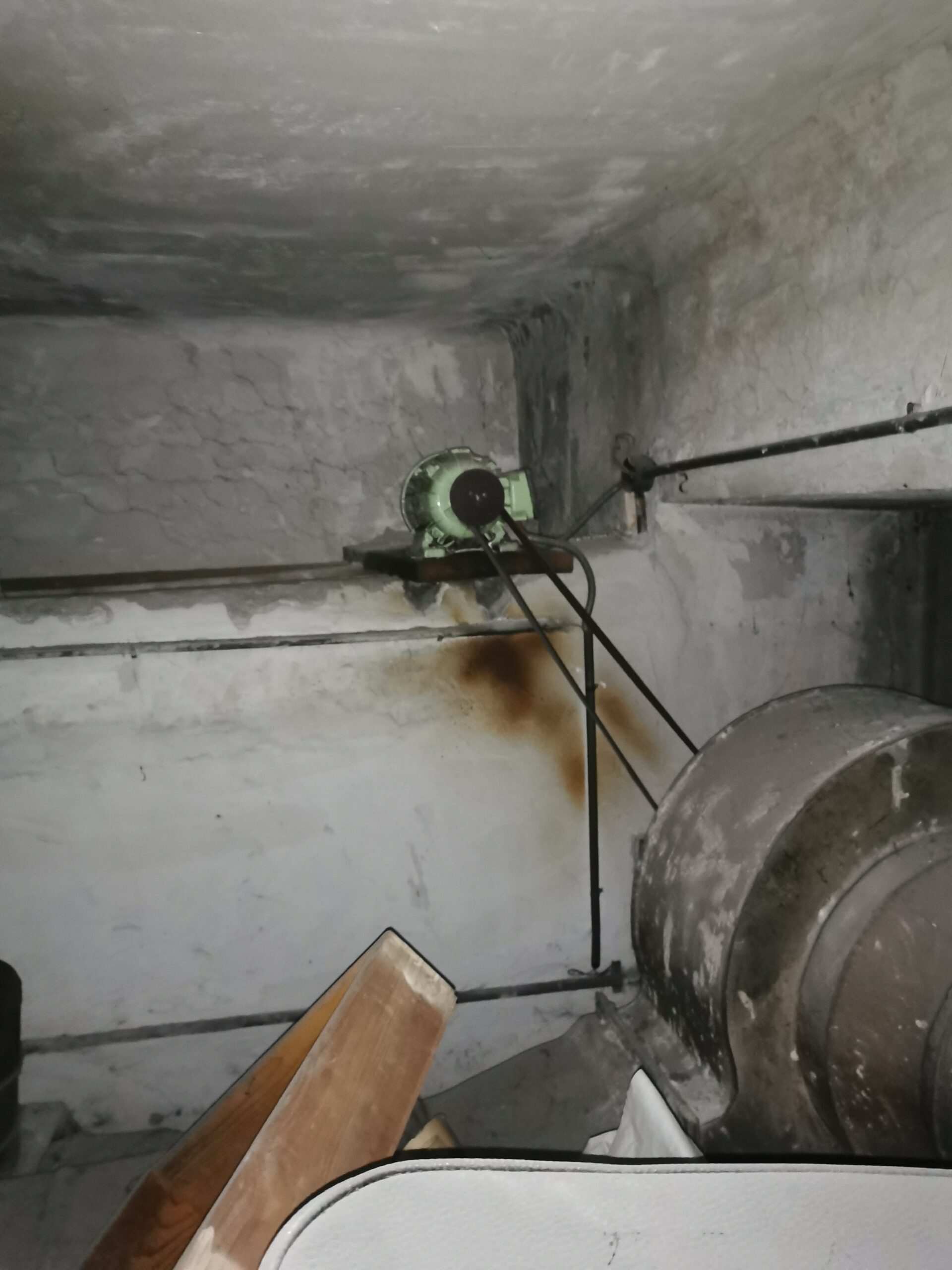 Die vorhandene Infrastruktur ist durch Überlagerungen und nachträgliche Eingriffe geprägt. Lüftung, Leitungsführungen und Einbauten verlaufen fragmentiert, ohne klare Ordnung.